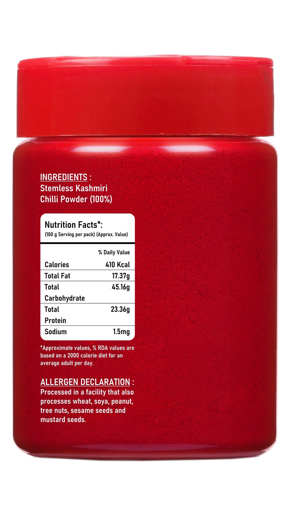 • Apart from making the food flavourful and visually appealing, it has a lot of health benefits. Low in heat and extremely rich in nutritional value, kashmiri chili powder is a source of numerous health benefits.
